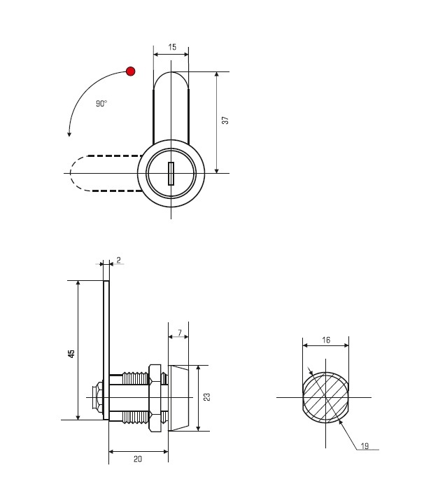 Чертеж замка 20 мм 90° ЕвроБокс н/в с мастер системой арт. 0092